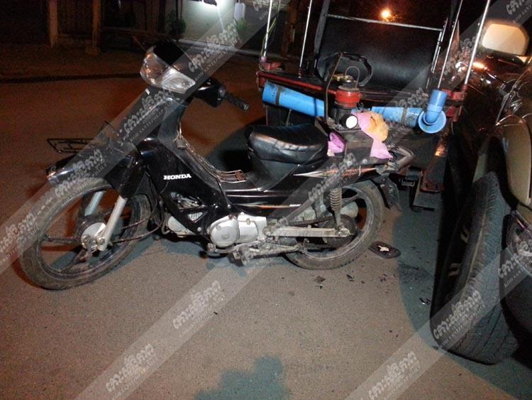 ប្រភពព័ត៌មានបានឲ្យដឹងថា រថយន្តតូយ៉ូតា តាកូម៉ា ពណ៌ទឹកប្រាក់ ពាក់ស្លាកលេខ ភ្នំពេញ 2Z- 6772 បើកបរដោយបុរសម្នាក់ធ្វើដំណើរតាមផ្លូវលេខ ៣៧៤ ពីលិចទៅកើតមកដល់ចំណុចខាងលើរថយន្តបត់ស្តាំរួចបានជិះអែបខាងឆ្វេងដៃធ្វើឲ្យរ៉ឺម៉កម៉ូតូបើកបរតាមផ្លូវលេខ១៩៣ ពីជើងទៅត្បូង បានងាកចង្កូតទៅខាងឆ្វេងដែរ ក៏បានកៀរនឹងរថយន្តតាកូម៉ាធ្វើឲ្យបែកកញ្ចក់និងក្រពិតទ្វារក្រោយចំហៀងខាងស្តាំ តែមិនមានអ្នករងរបួសទេ ។