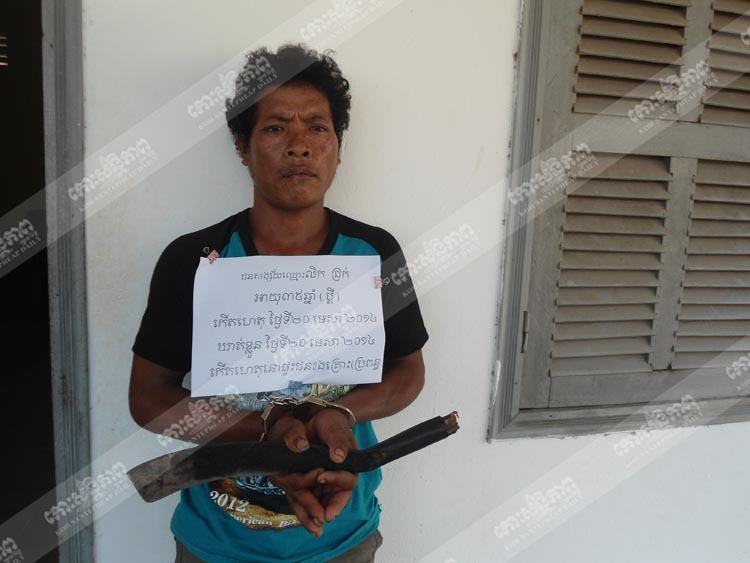 ខេត្តសៀមរាប ៖ នគរបាលស្រុកពួក សហការជាមួយនគរបាលព្រហ្មទណ្ឌកម្រិតធ្ងន់នៃស្នងការដ្ឋាននគរបាលខេត្ត បានឃាត់ខ្លួនបុរសជាប្តី ដែលបានសម្លាប់ប្រពន្ធ ខណៈពេលរូបគេស្រវឹងស្រា ហើយទាញកាំបិតខ្វែវកាប់ប្រពន្ធជាច្រើនកាំបិត ផុងលលាដ៍ក្បាលស្លាប់ភ្លាមៗនៅលើផ្ទះ ។ ហេតុការណ៍នេះ កើតឡើងកាលពីវេលាម៉ោង៥ភ្លឺ ថ្ងៃទី២០ មេសា នៅលើផ្ទះ ក្នុងភូមិចុងថ្នល់ ឃុំយាង ស្រុកពួក ។