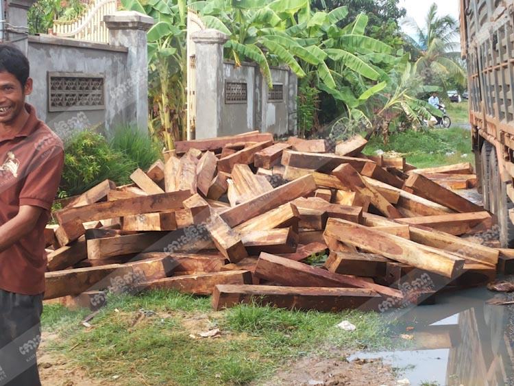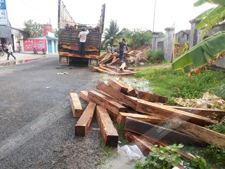 ឈើប្រណីតប្រភេទធ្នង់ជាង១៨ម៉ែត្រគូប ត្រូវគេដឹកយកមកទម្លាក់ចោលនៅមុខហាងខារ៉ាអូខេ ABC ក្នុងក្រុងកំពង់ចាម