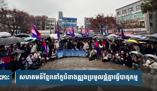 សហគមន៍ខ្មែរនៅកូរ៉េខាងត្បូងប្រមូលផ្តុំគ្នាធ្វើបាតុកម្មសម្តែងមតិថ្កោលទោ.សការឈ្លា.នពានយ៉ាងសាហា.វព្រៃផ្សៃរបស់កងទ័ពថៃមកលើដែនអធិបតេយ្យកម្ពុជា 11 ម៉ោង មុន