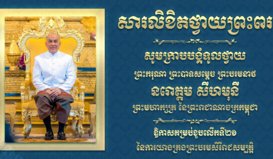 គណៈគ្រប់គ្រង និងបុគ្គលិកគ្រប់ជាន់ថ្នាក់ របស់ ណាហ្គាវើលដ៍ ផ្ញើសារថ្វាយព្រះពរ ព្រះករុណាព្រះបាទសម្តេចព្រះបរមនាថ នរោត្តម សីហមុនី ក្នុងឱកាសព្រះរាជពិធីគម្រប់ខួបលើកទី ២១ នៃការគ្រងព្រះបរមសិរីរាជសម្បត្តិ 6 ម៉ោង មុន