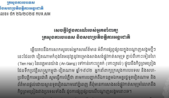 ក្រសួងការបរទេស ៖ ពុំមានការសាងសង់ផ្លូវកាត់សមុទ្ររំលោភកិច្ចព្រមព្រៀងដែនទឹកកម្ពុជា-វៀតណាម នោះទេ 1 ថ្ងៃ មុន