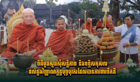 ព្រះសង្ឃ ពុទ្ធបរិស័ទ មន្ត្រីរាជការជាង១ពាន់អង្គ/នាក់ធ្វើពិធីបួងសួងសុំសេចក្តីសុខជូនដល់វីរៈកងទ័ព នៅប្រាសាទនគរបាជ័យ 6 ម៉ោង មុន