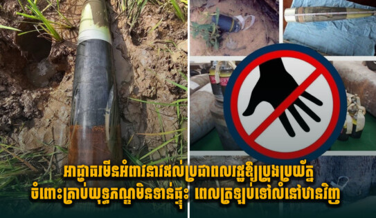 អាជ្ញាធរមីនអំពាវនាវដល់ប្រជាពលរដ្ឋឱ្យប្រុងប្រយ័ត្នចំពោះគ្រា.ប់យុទ្ធភណ្ឌមិនទាន់ផ្ទុះ ពេលត្រឡប់ទៅលំនៅឋានវិញ 2 ម៉ោង មុន