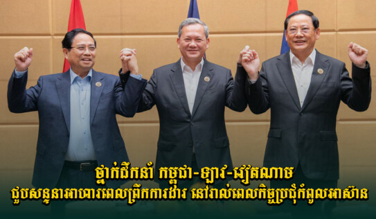 ប្រមុខដឹកនាំកម្ពុជា-ឡាវ-វៀតណាមឯកភាពបន្តពង្រឹងកិច្ចប្រតិបត្តិការ ពិសេស ការតភ្ជាប់ផ្លូវគមនាគមន៍ ការផ្គត់ផ្គង់អគ្គិសនី និងការទូទាត់តាមឌីជីថល 14 ម៉ោង មុន