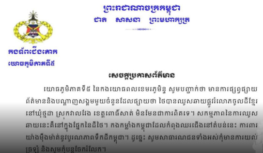 យោធភូមិភាគទី៥៖ ការផ្សាយថា ថៃបានឈូសឆាយផ្លូវរំលោភចូលដីខ្មែរនៅឃុំថ្មដា ស្រុកវាលវែង ខេត្តពោធិ៍សាត់ មិនមែនជាការពិតទេ 3 ម៉ោង មុន