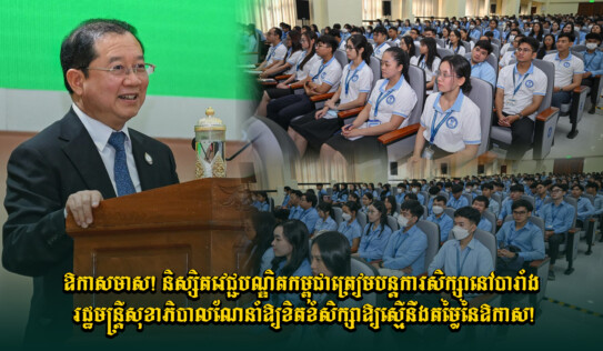 ឱកាសមាស! និស្សិតវេជ្ជបណ្ឌិតកម្ពុជាត្រៀមបន្តការសិក្សានៅបារាំង រដ្ឋមន្ត្រីសុខាភិបាលណែនាំឱ្យខិតខំសិក្សាឱ្យស្មើនឹងតម្លៃនៃឱកាស! 21 ម៉ោង មុន
