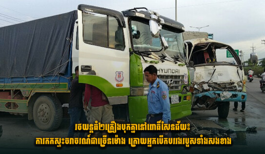 បុករថយន្តឆ្លងផ្លូវពេញទំហឹង ! រថយន្តដឹកទំនិញ២គ្រឿងខូចខាត អ្នកបើកបររបួស បង្កការកកស្ទះលើមហាវិថីឈ្នះឈ្នះរាប់ម៉ោង 2 ថ្ងៃ មុន