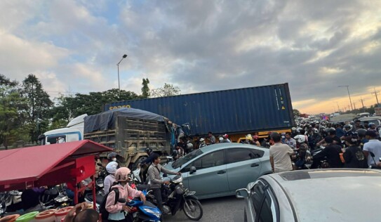 គ្រោះថ្នាក់ចរាចរណ៍លើផ្លូវជាតិលេខ៤៖ ឡានចង្កូតស្ដាំដឹកខ្សាច់បុ.កកុងតឺន័រ បង្កការកកស្ទះយ៉ាងខ្លាំងនៅមុខវត្តកំបូល 5 ថ្ងៃ មុន