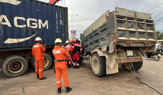 រថយន្តបែនដឹកថ្ម បុកកន្ទុយរថយន្តសណ្តោងកុងតឺន័រ បត់ឆ្លងផ្លូវ គៀបជាប់អ្នកបើកបរក្នុងកាប៊ីនរងរបួសធ្ងន់ 6 ថ្ងៃ មុន