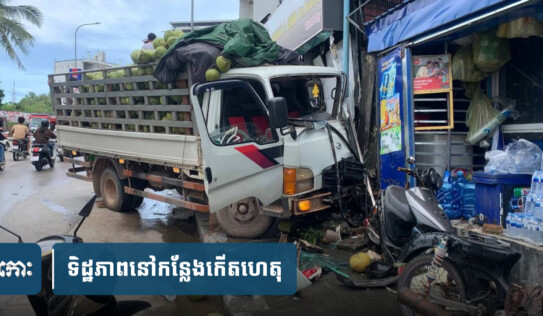 ឡានដឹកដូង ចុះចំណោតជាន់ហ្វ្រាំងមិនជាប់បុ.កផ្ទះ២ល្វែង ខូចខាតម៉ូតូ៣គ្រឿង និងរបួ.សម្នាក់ 1 ថ្ងៃ មុន