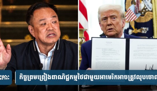 ការភ័.យខ្លាចខ្លាំងឡើងថា កិច្ចព្រមព្រៀងពាណិជ្ជកម្មរបស់ថៃជាមួយអាមេរិកអាចត្រូវលុបចោល ដោយសារជម្លោះជាមួយកម្ពុជា 1 អាទិត្យ មុន