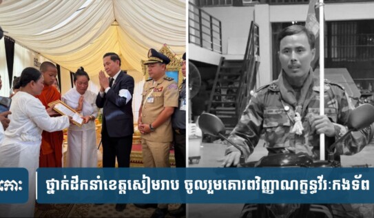វីរភាពដ៏អង់អាចក្លាហាន មិនអាចបំភ្លេចបាន! ថ្នាក់ដឹកនាំខេត្តសៀមរាប ចូលរួមគោរពវិញ្ញាណក្ខន្ធអនុសេនីយ៍ទោ កេត សុភត្ត្រា 1 ខែ មុន