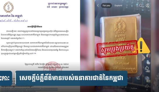 ធនាគារជាតិ ប្រាប់ឱ្យប្រយ័ត្នអំពីវត្តមានមាសសន្លឹក ដែលមាននិមិត្តសញ្ញា (logo) របស់ធនាគារជាតិនៃកម្ពុជា 6 ថ្ងៃ មុន