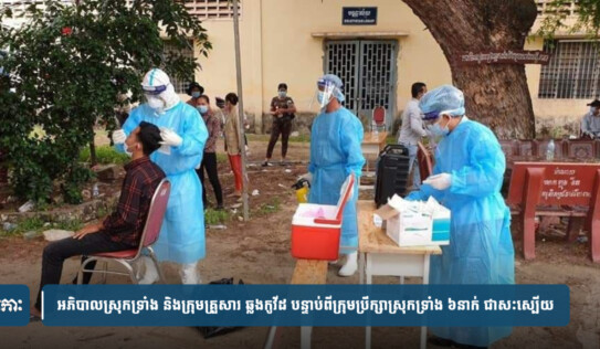 អភិបាលស្រុកទ្រាំង ខេត្តតាកែវ និងក្រុមគ្រួសារ ឆ្លងកូវីដ បន្ទាប់ពីក្រុមប្រឹក្សាស្រុកទ្រាំង ៦នាក់ ជាសះស្បើយ 4 ឆ្នាំ មុន