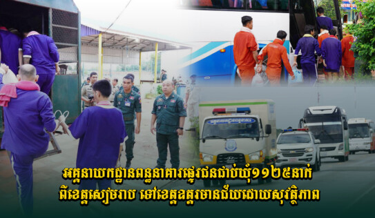 អគ្គនាយកដ្ឋានពន្ធនាគារផ្ទេរជនជាប់ឃុំ១១២៥នាក់ ពីខេត្តសៀមរាប ទៅខេត្តឧត្តរមានជ័យដោយសុវត្ថិភាព 2 អាទិត្យ មុន