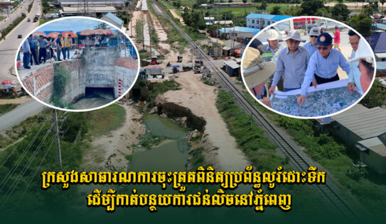 ក្រសួងសាធារណការ ពិនិត្យវឌ្ឍនភាពគម្រោងលូបង្ហូរទឹកបញ្ចៀសការជន់លិចតាមបណ្ដោយផ្លូវជាតិលេខ៤ និងផ្លូវរថភ្លើង 2 អាទិត្យ មុន