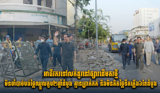 អាជ្ញាធរភ្នំពេញ ដាក់លក្ខខណ្ឌឱ្យអាជីវករ ត្រូវផ្លាស់ប្ដូរទៅផ្សារដើមគថ្មី ឬទៅរកទីតាំងឯកជន ប៉ុន្តែមិនមែនលក់លើដងផ្លូវ និងចិញ្ចើមផ្លូវសាធារណៈ ដាច់ខាត 2 អាទិត្យ មុន