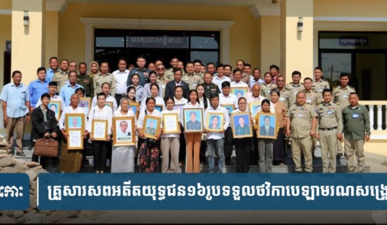 គ្រួសារសពអតីតយុទ្ធជន១៦រូបក្នុងក្រុងសៀម រាបទទួលបានថវិកាបេឡាមរណសង្គ្រោះពីសមាគមអតីតយុទ្ធជន និងនិវត្តជនកម្ពុជា 1 អាទិត្យ មុន