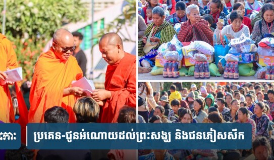 សម្តេចព្រះធម្មលិខិតបណ្ឌិត សៅរ៍ ចន្ទថុល្ល ប្រគេន-ជូនអំណោយព្រះសង្ឃចំនួន៦វត្ត និងជនភៀសសឹកជាង១ពាន់គ្រួសារ នៅខេត្តបន្ទាយមានជ័យ 2 ខែ មុន