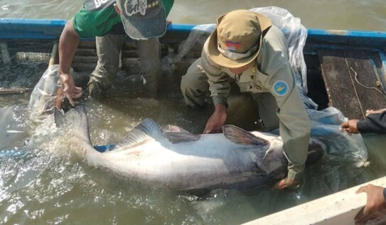 ត្រីរាជទម្ងន់ជិត១០០គីក្រាមមួយក្បាលទៀតហើយដែលប្រជានេសាទចាប់បានប្រគល់ជូនជំនាញជលផល 1 អាទិត្យ មុន