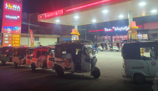 ម៉ូតូកង់បីជាច្រើនគ្រឿង នាំគ្នាសម្រុកតម្រង់ជួរចូលចាក់ហ្គាសនៅស្ថានីយតេលាខ្មែរ 1 អាទិត្យ មុន