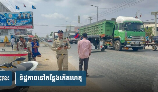 គ្រោះថ្នាក់ចរាចរណ៍លើផ្លូវជាតិលេខ៤៖ ឡានចង្កូតស្ដាំដឹកខ្សាច់បុ.កកុងតឺន័រ បង្កការកកស្ទះយ៉ាងខ្លាំងនៅមុខវត្តកំបូល 1 អាទិត្យ មុន