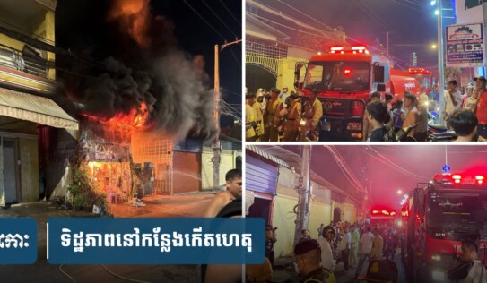 ម្ចាស់កំពុងសម្រាន្ត ស្រាប់តែគេឮសំឡេងផ្ទះ និងមានអណ្តាតភ្លើងឆេះតូបជួសជុលម៉ូតូរាលដាលដល់ផ្ទះ៣ខ្នងយ៉ាងសន្ធោសន្ធៅ 1 អាទិត្យ មុន
