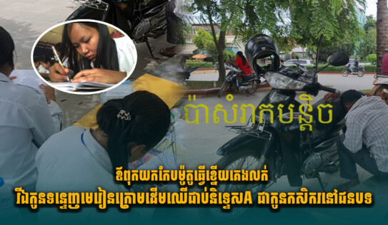 ឪពុកយកកែបម៉ូតូធ្វើខ្នើយគេងលក់ រីឯកូនទន្ទេញមេរៀនក្រោមដើមឈើជាប់និទ្ទេសA ជាកូនកសិករនៅជនបទ 1 អាទិត្យ មុន