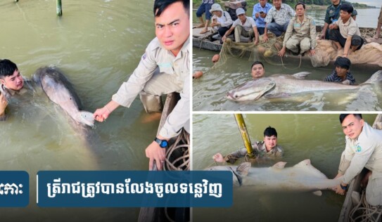 នេសាទបានត្រីរាជទម្ងន់ជិត១០០គីឡូ រួចរាយការណ៍ជូនមន្ត្រីជំនាញដើម្បីលែងចូលទន្លេវិញ 1 អាទិត្យ មុន