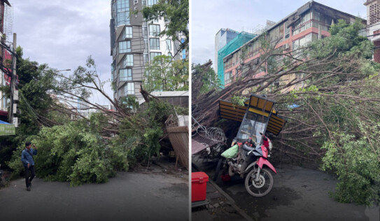 ខ្យល់កន្ត្រាក់ រលំដើមក្ងោកសង្កត់រថយន្តព្រូស១គ្រឿង នៅក្បែរសួននាគបាញ់ទឹកវិមានឯករាជ្យ 1 អាទិត្យ មុន