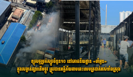 ខ្យុសថ្មប្រក់ស្បូវចំនួន១០ នៅភោជនីយដ្ឋាន «ចាំអូន» ក្នុងសង្កាត់ផ្សារដើមថ្កូវ ត្រូវបានឆាបឆេះលេបត្របាក់អស់ទាំងស្រុង 3 អាទិត្យ មុន
