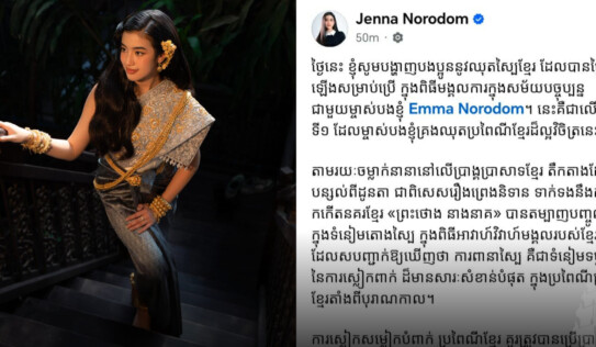 ព្រះនាងចេនណា ចង់ឃើញសម្លៀកបំពាក់ប្រពៃណីខ្មែរប្រើប្រាស់ច្រើនទម្រង់ ជាពិសេសការប្រើប្រាស់ស្បៃ ខណៈកំពុងរងនូវហានិភ័យពីការទាមទារជាកម្មសិទ្ធិផ្ដាច់មុខ 2 អាទិត្យ មុន