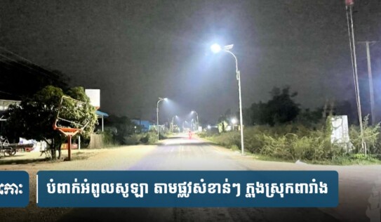 ដាក់អំពូលសូឡាជាង៣០០ដើម តាមដងផ្លូវសំខាន់ៗក្នុងស្រុកស្វាយអន្ទរ សម្រួលដល់ការធ្វើដំណើរ និងបង្ការសកម្មភាពមិនប្រក្រតីផ្សេងៗ 1 ខែ មុន