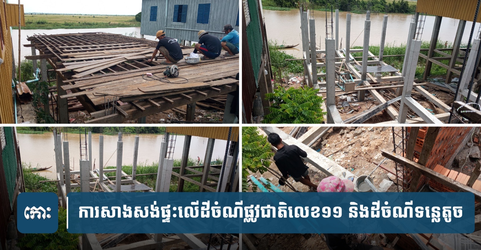 ការសាងសង់ផ្ទះលើដីចំណីផ្លូវជាតិលេខ១១និងដីចំណីទន្លេតូចយ៉ាងណែនតាន់តាប់ អាជ្ញាធររក្សាភាពស្ងៀមស្ងាត់? សង្ស័យចាយប្រាក់ច្រើនទើបសង់បាន 6 ខែ មុន