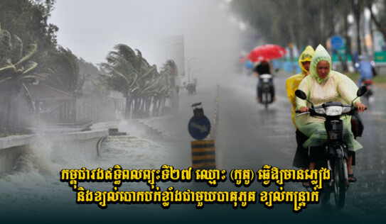 សូមប្រយ័ត្ន! កម្ពុជារងឥទ្ធិពលព្យុះទី២៧ ឈ្មោះ (កូតូ) ធ្វើឲ្យមានភ្លៀង និងខ្យល់បោកបក់ខ្លាំងជាមួយបាតុភូតខ្យល់កន្ត្រាក់ 2 ថ្ងៃ មុន