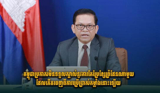 កម្ពុជាប្រកាសមិនទទួលស្គាល់នូវការកែប្រែខ្សែព្រំដែនណាមួយដែលកើតចេញពីការប្រើប្រាស់កម្លាំងនោះឡើយ 2 ថ្ងៃ មុន