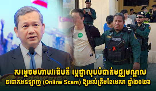 សម្តេចមហាបវរធិបតី ប្តេជ្ញាលុបបំបាត់មជ្ឈមណ្ឌលឆបោ.កអនឡាញ (Online Scam) ឱ្យអស់ត្រឹមខែមេសាខាងមុខ 2 ថ្ងៃ មុន
