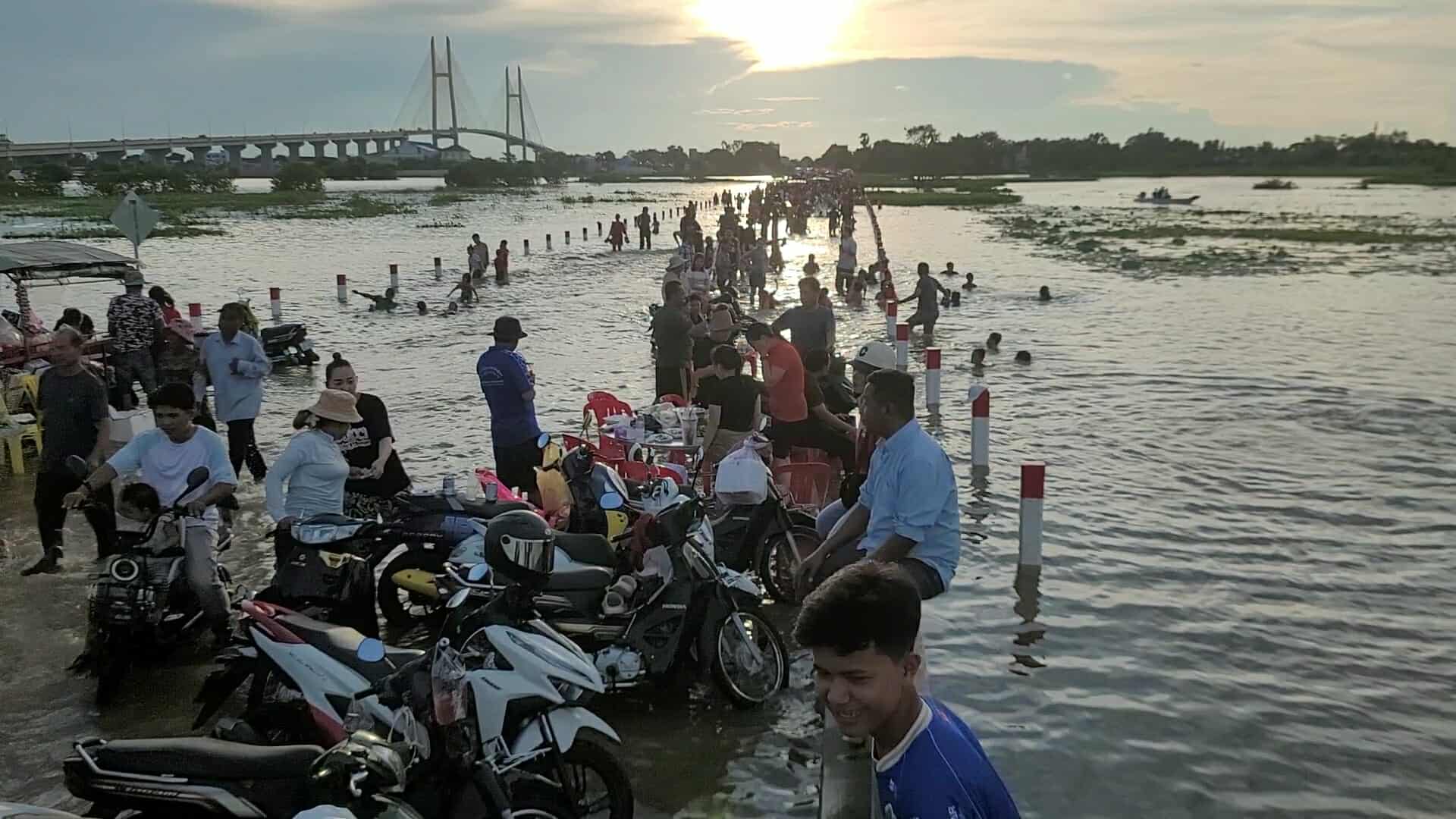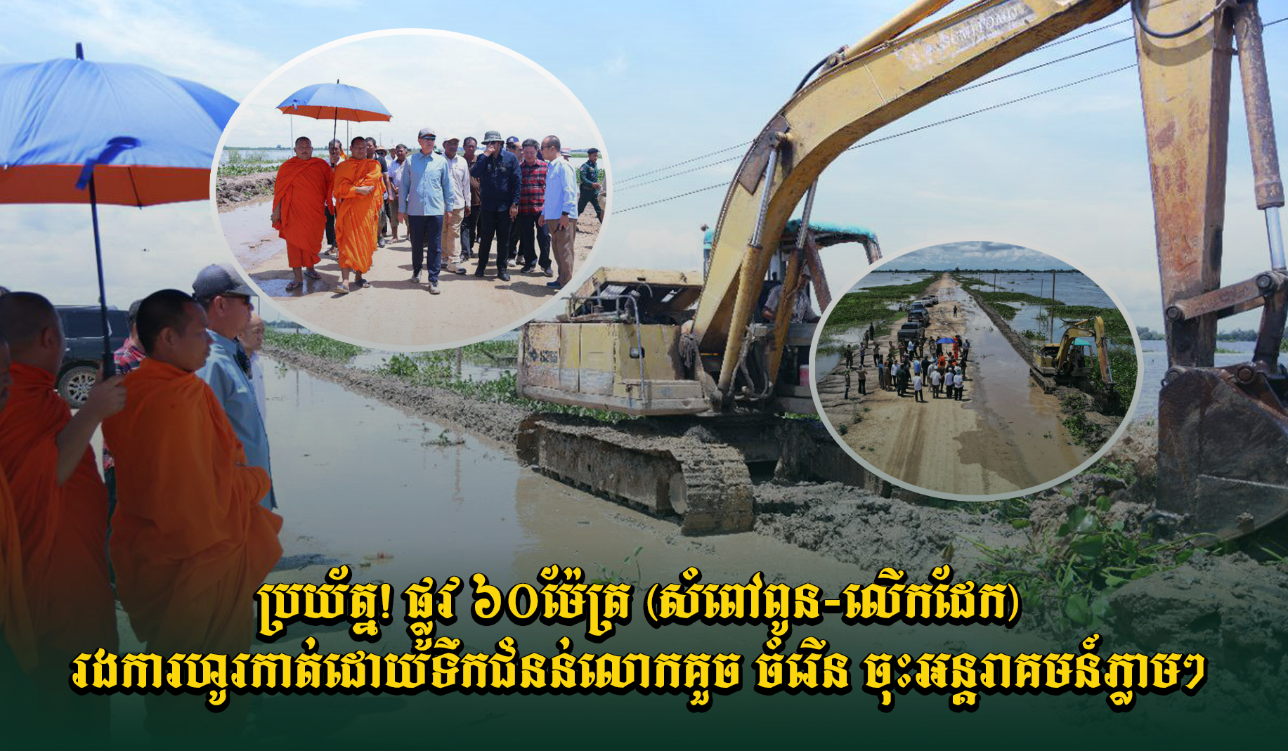 ខេត្តកណ្តាល៖ ផ្លូវ(៦០ម៉ែត្រ)តភ្ជាប់ពីក្រុងសំពៅពូនទៅស្រុកលើកដែកខេត្តកណ្ដាល រងផលប៉ះពាល់ទឹកជំនន់ឡើងហូរកាត់ ខណៈអាជ្ញាធរចុះពិនិត្យស្ថានភាពជាក់ស្ដែង...