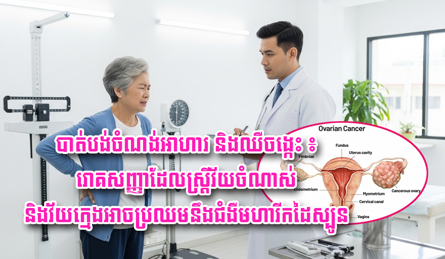 មន្ទីរពេទ្យកាល់ម៉ែតបានប្រកាសនាពេលកន្លងមកថា ៖ Ovarian cancer គឺជាជំងឺមហារីកដែលអាចកើតនៅលើដៃស្បូនរបស់ស្ត្រីនៅផ្នែកខាងឆ្វេងឬខាងស្តាំ ឬទាំងសងខាងផងដែរ។ ១. រោគ...