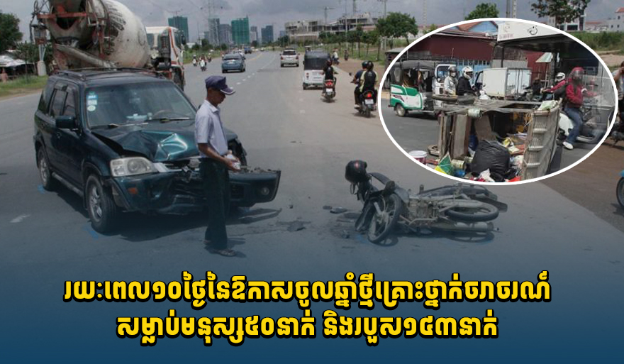 រាជធានីភ្នំពេញ ៖ ក្នុងរយៈពេល១០ថ្ងៃ រាប់ចាប់ពីថ្ងៃទី១០ ដល់ថ្ងៃទី១៩ ខែមេសា ឆ្នាំ២០២៦ រួមទាំងក្នុងថ្ងៃបុណ្យចូលឆ្នាំថ្មី នៅទូទាំងប្រទេសមានករណីគ្រោះថ្នាក់...