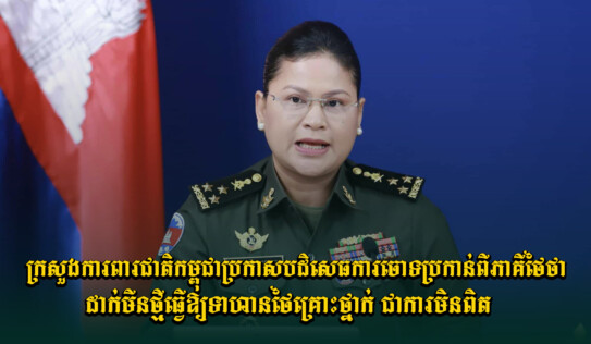 ក្រសួងការពារជាតិកម្ពុជា ប្រកាសបដិសេធការចោទប្រកាន់ពីភាគីថៃថាដាក់មីនថ្មីធ្វើឲ្យទាហានថៃគ្រោះថ្នាក់ ជាការមិនពិត 3 ម៉ោង មុន