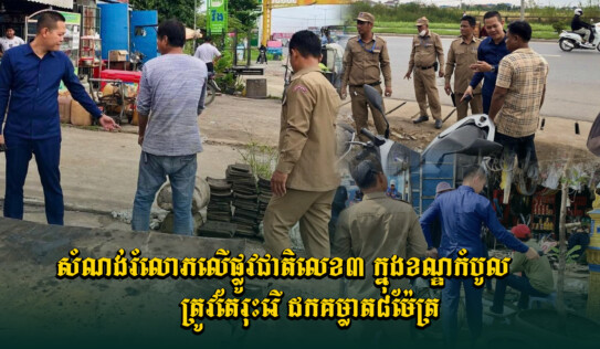 វិធានការក្តៅ! អាជ្ញាធរខណ្ឌកំបូលតម្រូវឱ្យរុះរើសំណង់រំលោ.ភលើផ្លូវជាតិលេខ៣ ដោយដកគម្លាតពីចិញ្ចើមផ្លូវ៨ម៉ែត្រ 2 ម៉ោង មុន