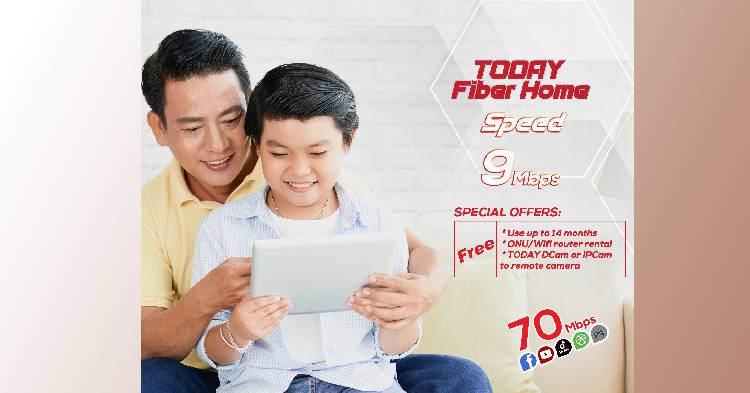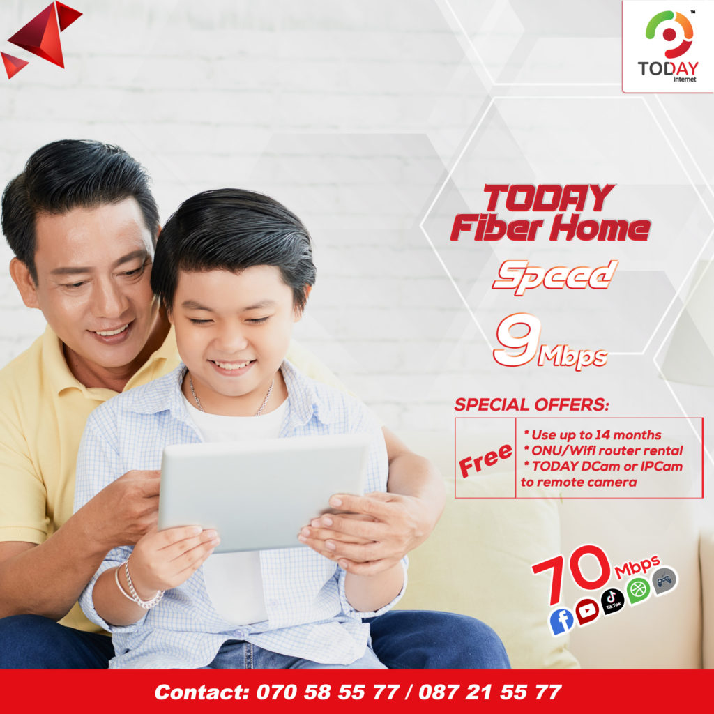រាជធានីភ្នំពេញ ៖ ការកម្សាន្តជុំគ្រួសារ អាជីវកម្មខ្នាតតូច ការសិក្សា និងធ្វើការពីផ្ទះលែងជាបញ្ហាជាមួយកញ្ចប់សេវាកម្មអុិនធឺណិតកម្រិតខ្ពស់ TODAY Fiber Home ។ TODAY Fiber Home គឺជាកញ្ចប់សេវាកម្មថ្មីដែលត្រូវបានរចនាឡើងស័ក្កិសមបំផុតសម្រាប់ អតិថិជនដែលចង់ទទួលបានប្រព័ន្ធអ៊ុិនធឺណិតមួយដែលមានសេវាល្អប្រកបដោយគុណភាព និងទំនុកចិត្តខ្ពស់ ។ កញ្ចប់នេះនឹងផ្តល់ល្បឿនរហូតដល់ទៅ 70Mbps សម្រាប់ប្រើប្រាស់ជាមួយ Facebook, YouTube, TikTok, Local Game និងការប្រើប្រាស់ក្នុងស្រុកផ្សេងៗ ។ ក្រៅពីល្បឿននេះអ្នកប្រើប្រាស់ក៏នឹងទទួលបានល្បឿនរហូតដល់ទៅ 9Mbps ផ្សេងទៀត សម្រាប់ប្រើប្រាស់ក្រៅស្រុកជាមួយតម្លៃសមរម្យចាប់ពី ១៧ដុល្លារក្នុង ១ខែតែប៉ុណ្ណោះ ។