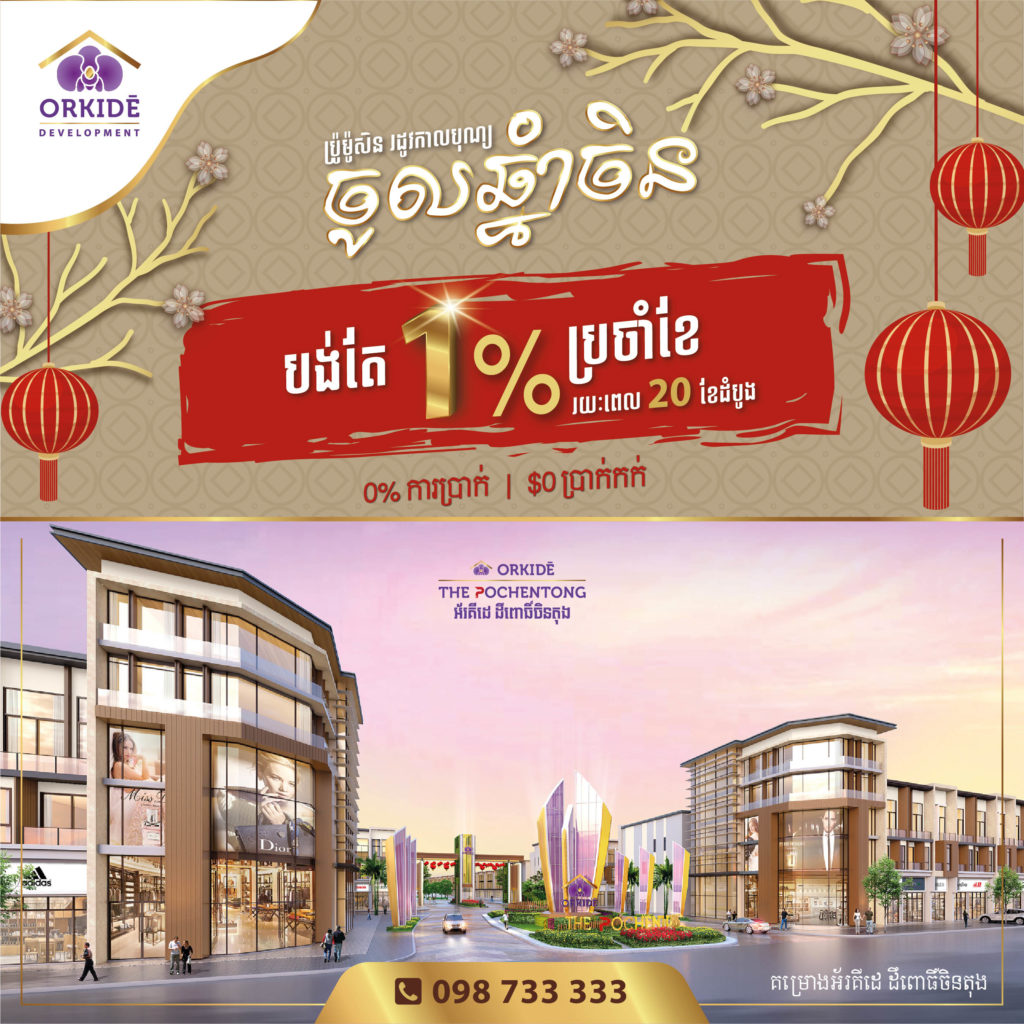 រាជធានីភ្នំពេញ ៖ អ័រគីដេ ដឹពោធិ៍ចិនតុង ផ្តល់ជូនសំណាងហេងហេងក្នុងឱកាសចូលឆ្នាំចិន ដោយបង់ប្រាក់ត្រឹមតែ ១% ប៉ុណ្ណោះក្នុងមួយខែ ។ ដើម្បីអបអរសាទរឱកាសបុណ្យចូលឆ្នាំថ្មីប្រពៃណីជនជាតិចិន…