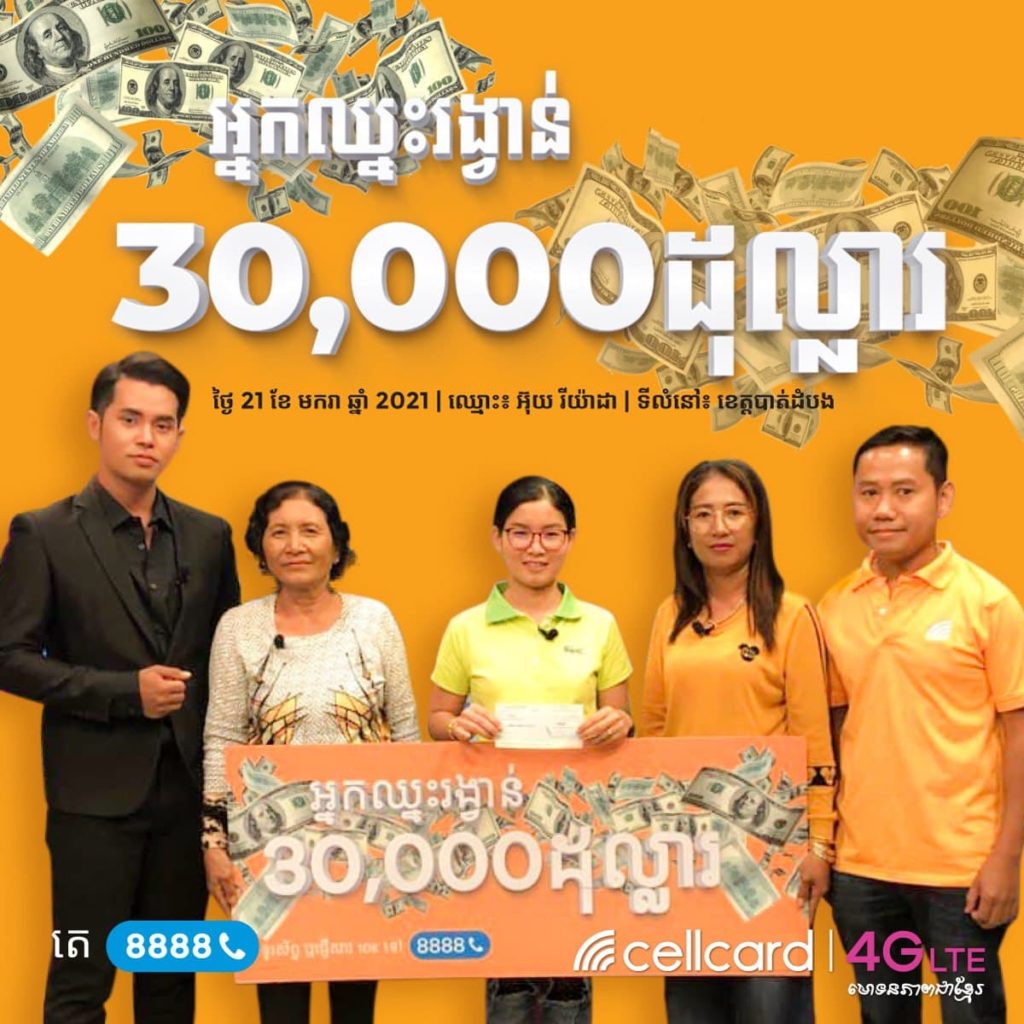 រាជធានីភ្នំពេញ ៖ ពិតជារំភើបជំនួសបងស្រី ដែលនៅខេត្តកំពុងឆ្នាំងណាស់! មានសំណាងឈ្នះលុយសុទ្ធ $30,000 ក្នុងកម្មវិធី “ឈ្នះមួយម៉ឺនដុល្លាររាល់ថ្ងៃ” ពីសែលកាត កាលពីថ្ងៃទី21 ខែ មករា ឆ្នាំ 2021នេះ។ អតិថិជនដែលមានសំណាងរូបនោះមានឈ្មោះថា អ៊ុយ រីយ៉ាដា បងស្រីមានមុខរបរជាបុគ្គលិកក្រុមហ៊ុនមួយ ដែលបងស្រីមានទីលំនៅខេត្តកំពង់ឆ្នាំង។