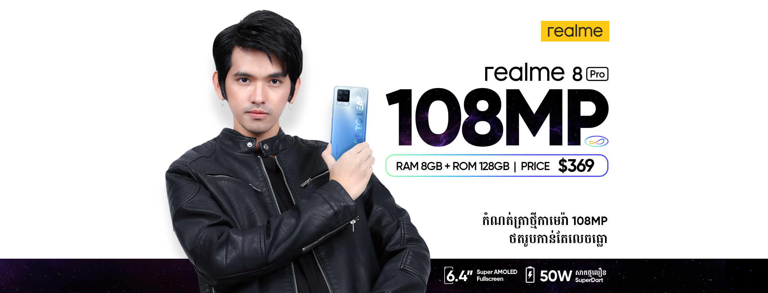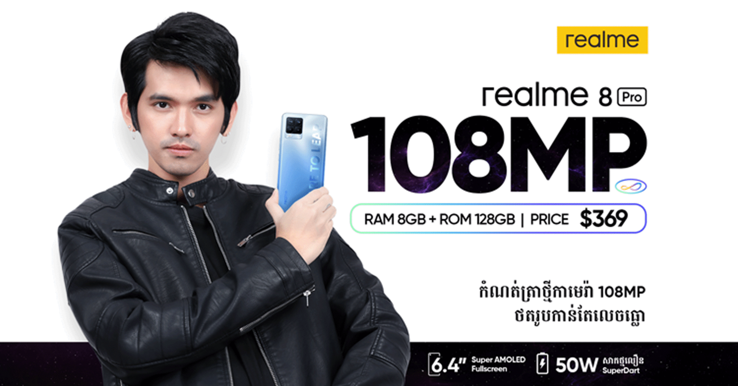 ស្មាតហ្វូន realme 8 Pro គឺជាសេរ៊ី pro ដែលជោគជ័យបង្អស់របស់ត្រកូល realme វាគឺជាផលិតផលដ៏អស្ចារ្យ ក្នុងទីផ្សារកម្រិតមធ្យមជាមួយនឹងការលក់បានចំនួនជាច្រើន ក្នុងកំឡុងរយៈពេល 2 ឆ្នាំមកនេះ។ realme 8 Pro នាំមកនូវកាមេរ៉ាកាន់តែលេចធ្លោ ដែលមានសិនស័រទំហំ108MP និង Pro ជាមួយមុខងារថតរូបកាន់តែទាន់សម័យ។ ហើយការរចនាបែបពន្លឺប្រដេញដែលអាចបញ្ចេញពន្លឺភ្លឺ វាបានក្លាយជាជម្រើសថ្មីសំរាប់យុវវ័យ ។