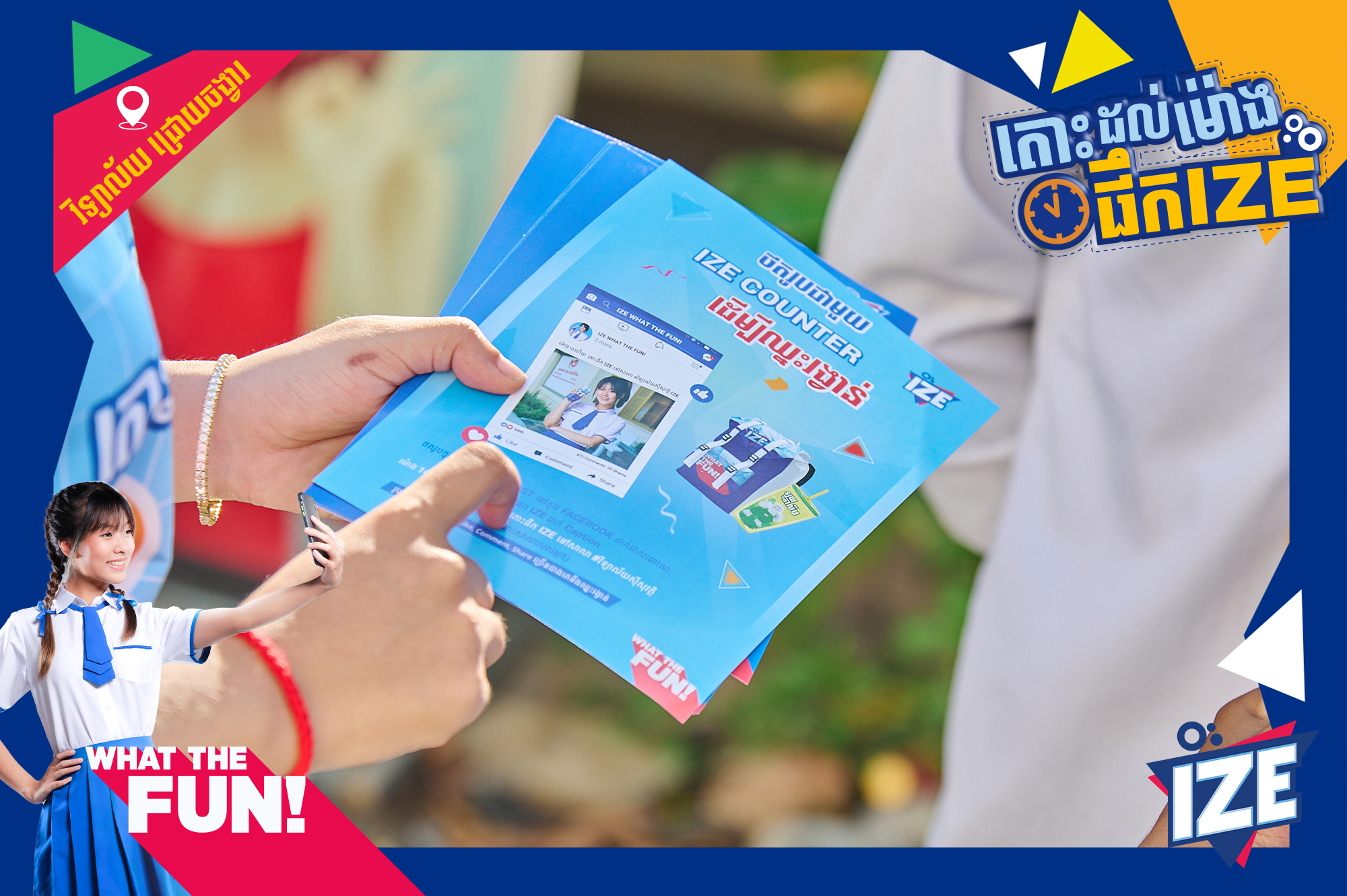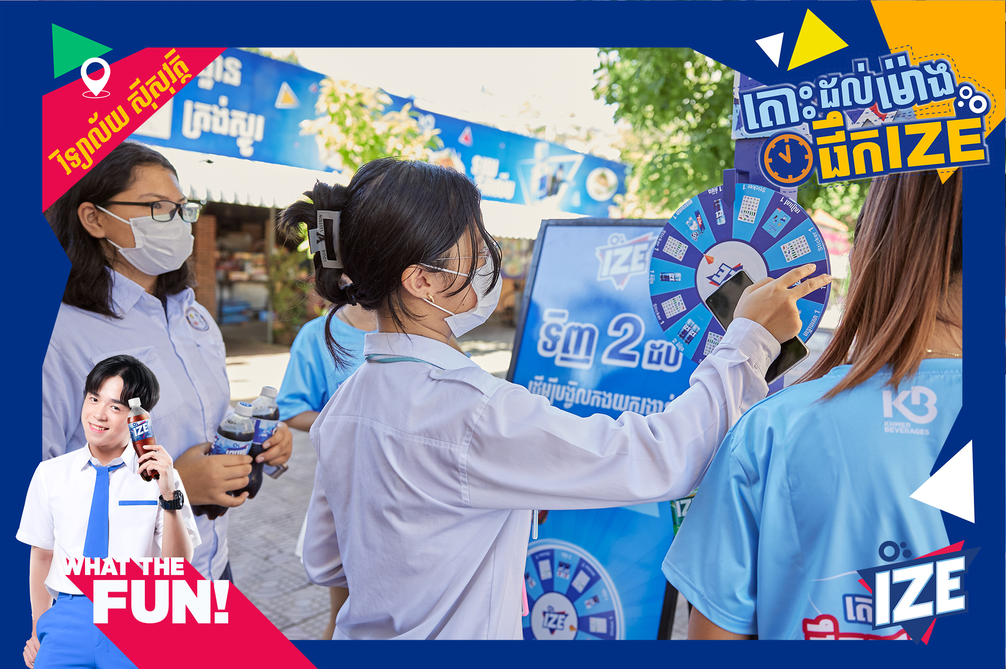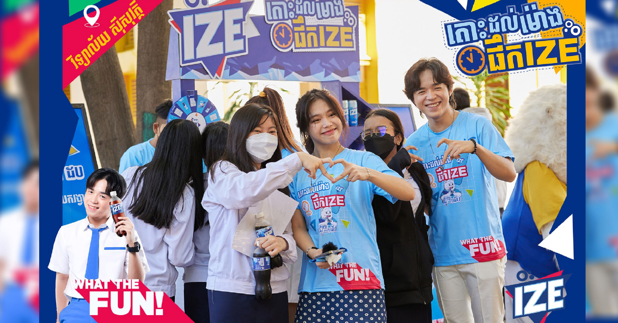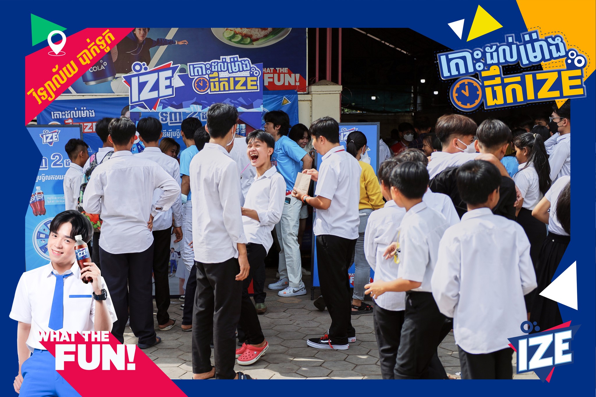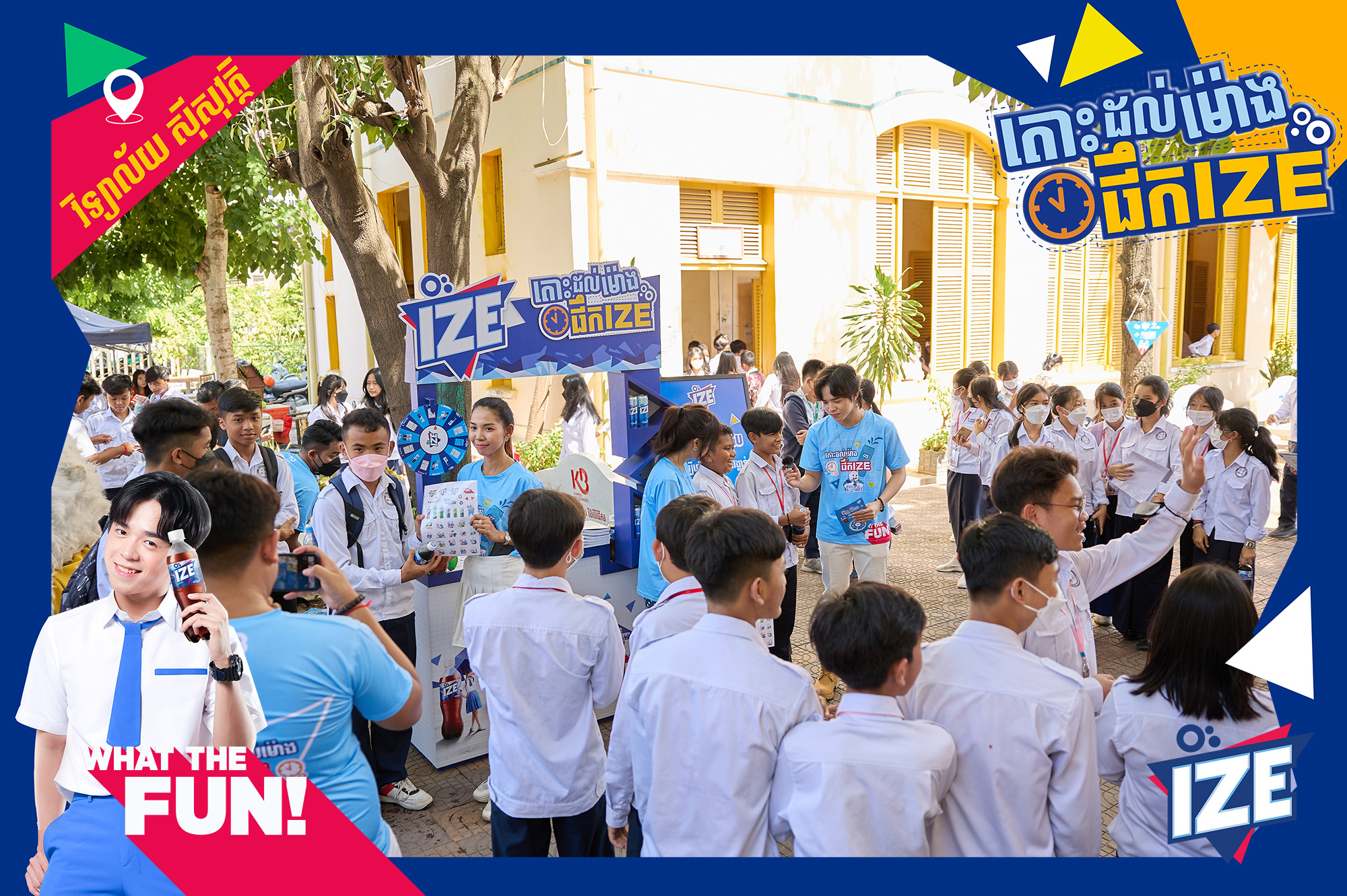 រាជធានីភ្នំពេញ ៖ កម្មវិធី «តោះៗចេញលេងផឹក IZE» នាំមកជូនដោយទឹកក្រូចអាយស៍បាន និងកំពុងទាក់ទាញចំណាប់អារម្មណ៍សិស្សសាលា នៅរាជធានីភ្នំពេញ ជាខ្លាំងជាមួយនឹងការបង្កើតសកម្មភាពសប្បាយៗជាច្រើន ពិសេសវត្តមាន KOL ល្បីៗដែលជាតារាក្នុងដួងចិត្តរបស់យុវវ័យសម័យថ្មី ។