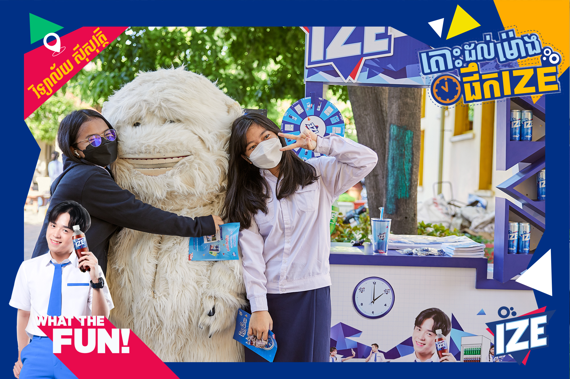ទឹកក្រូចអាយស៍ ដែលជាម៉ាកផលិតផលដ៏ល្បី និងពេញនិយមសម្រាប់យុវវ័យ បានបង្កើតកម្មវិធីនេះឡើង ដើម្បីផ្តល់ការកម្សាន្តដល់សិស្សានុសិស្ សនៅពេលចេញលេងរៀងរាល់ម៉ោង ១០ ព្រឹក និង ២ រសៀល តាមរយៈការប្រកួតថតរូបបញ្ចេញស្តាយឡូយកាលីបជាមួយ Yeti ដ៏សែនឃ្យូត ដើម្បីមានឱកាសឈ្នះរង្វាន់ និងការទិញទឹកក្រូចអាយស៍ ២ ដបអាចចូលរួមលេងហ្គេមបង្វិលកងយករង្វាន់ស្អាតៗភ្លាមៗ ពីទឹកក្រូច IZE ពិសេសជួបជាមួយ KOL ល្បីៗ Linda Vee និង Naro Vee ។