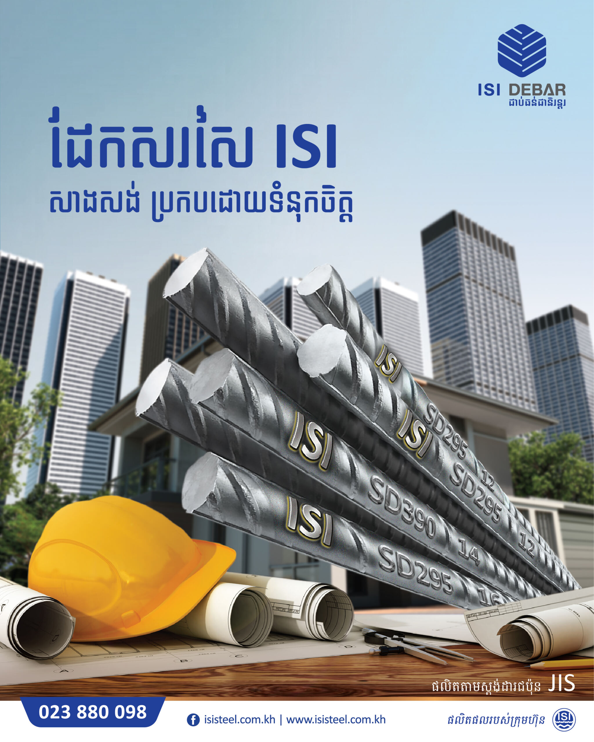 ព័ត៌មានបន្ថែម ទំនាក់ទំនង ៖ តាមរយៈទូរស័ព្ទលេខ 023-880-098 ឬ ចូលទៅកាន់គេហទំព័រ ៖ http://www.isisteel.com.kh/ ឬ ទំព័រហ្វេកប៊ុក ISI DEBAR ៕ អត្ថបទសហការ